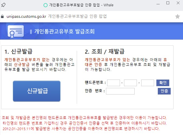 관세청 유니패스 홈페이지에 가시면 개인통관고유부호를 발급받을 수 있습니다.